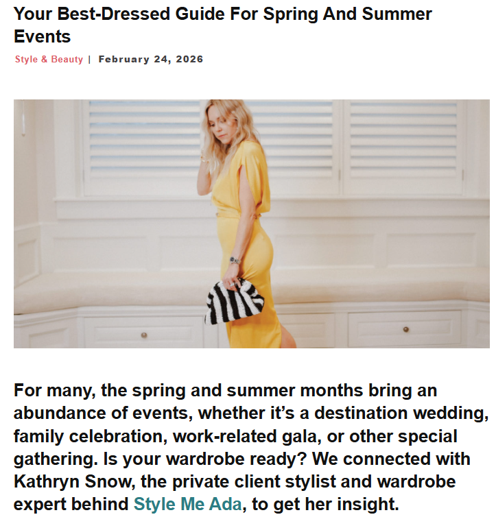 Style Me Ada is a luxury personal styling and wardrobe consulting studio founded by Kathryn Snow. The brand is known for its thoughtful, real-life approach to style, blending editorial perspective with practical, wearable solutions for modern women.